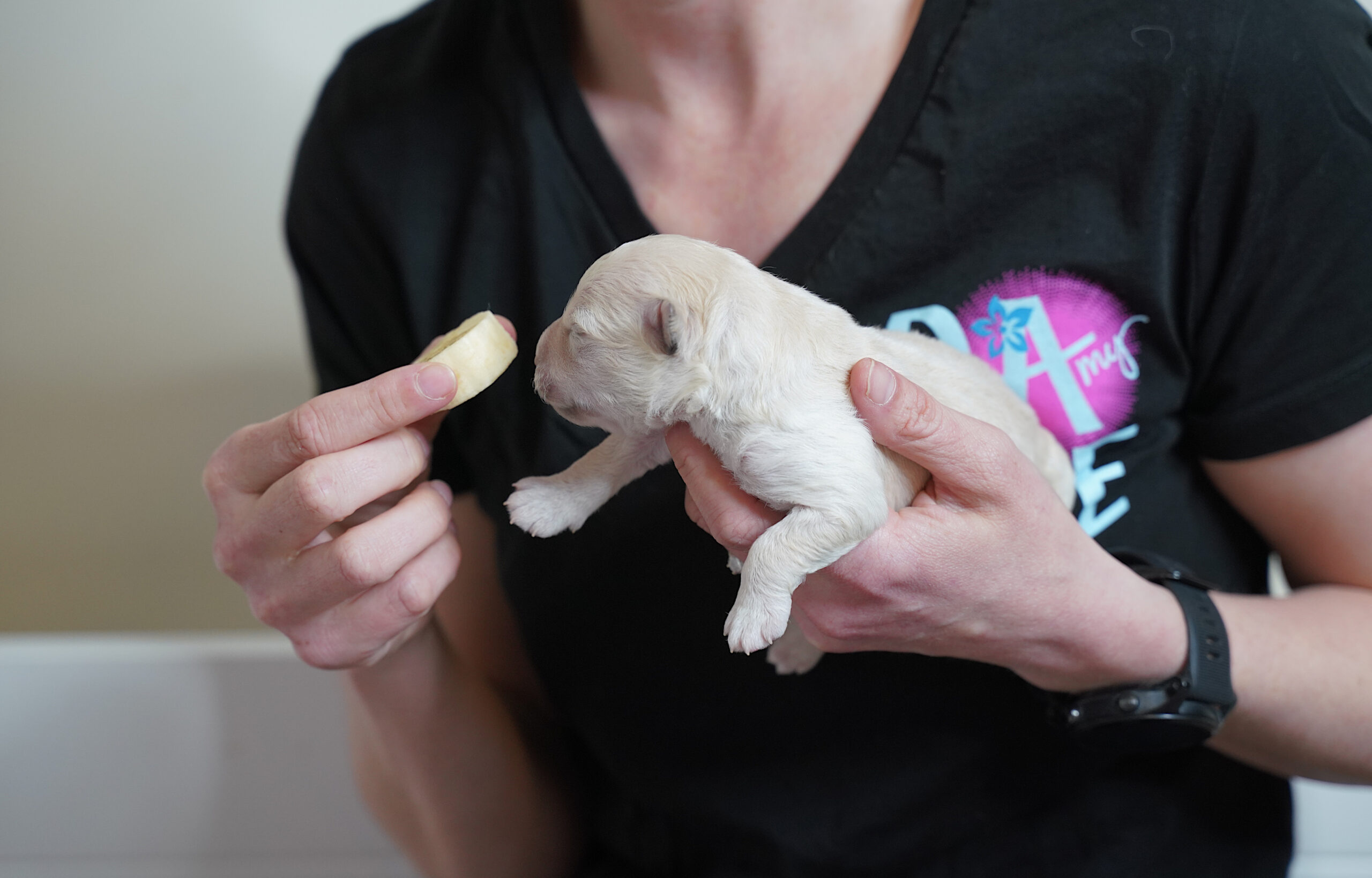 The Avidog program also recommends adding a novel scent to the rotation each day. Puppies will start this program before they can see or hear, but they can use their noses right away.