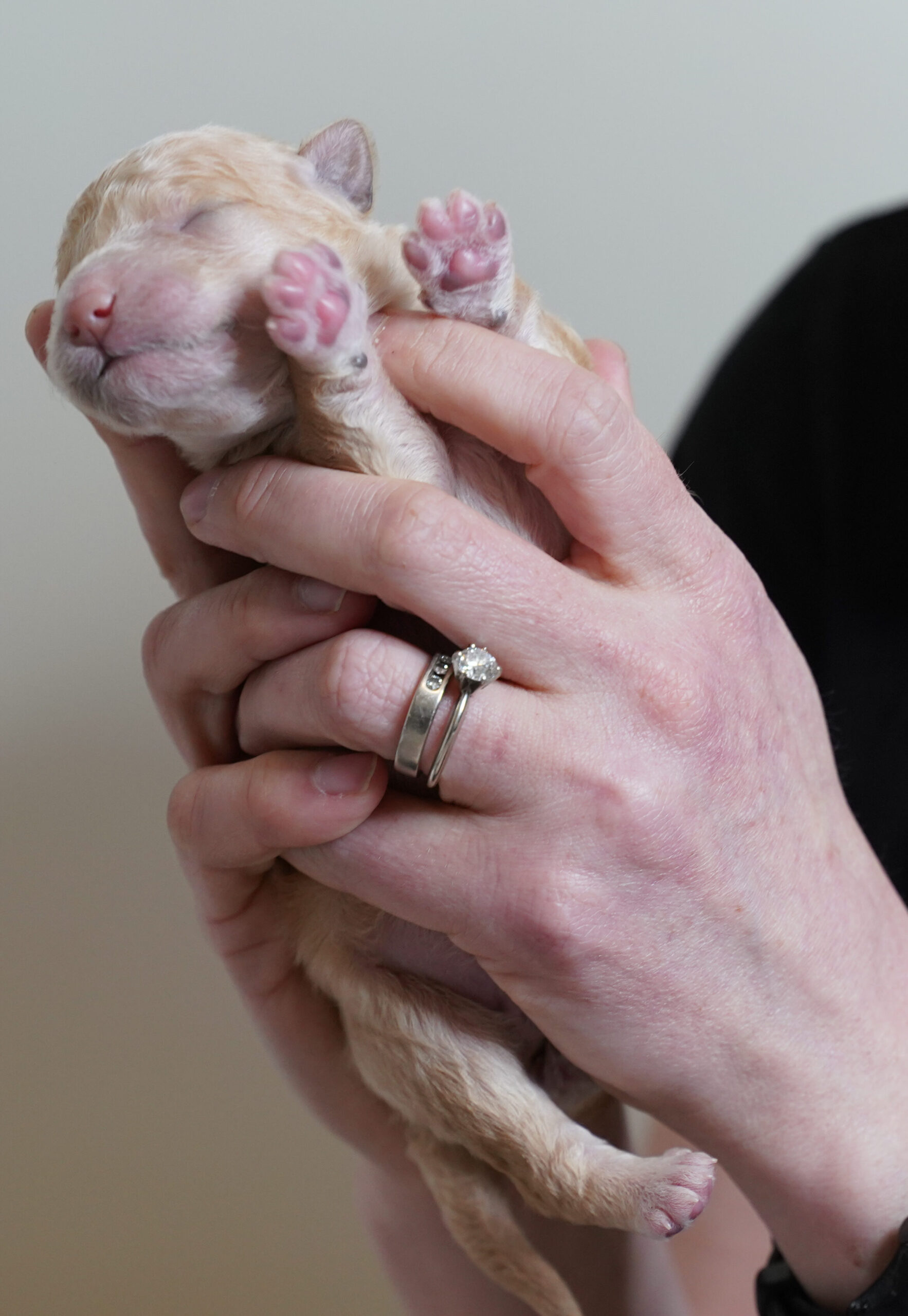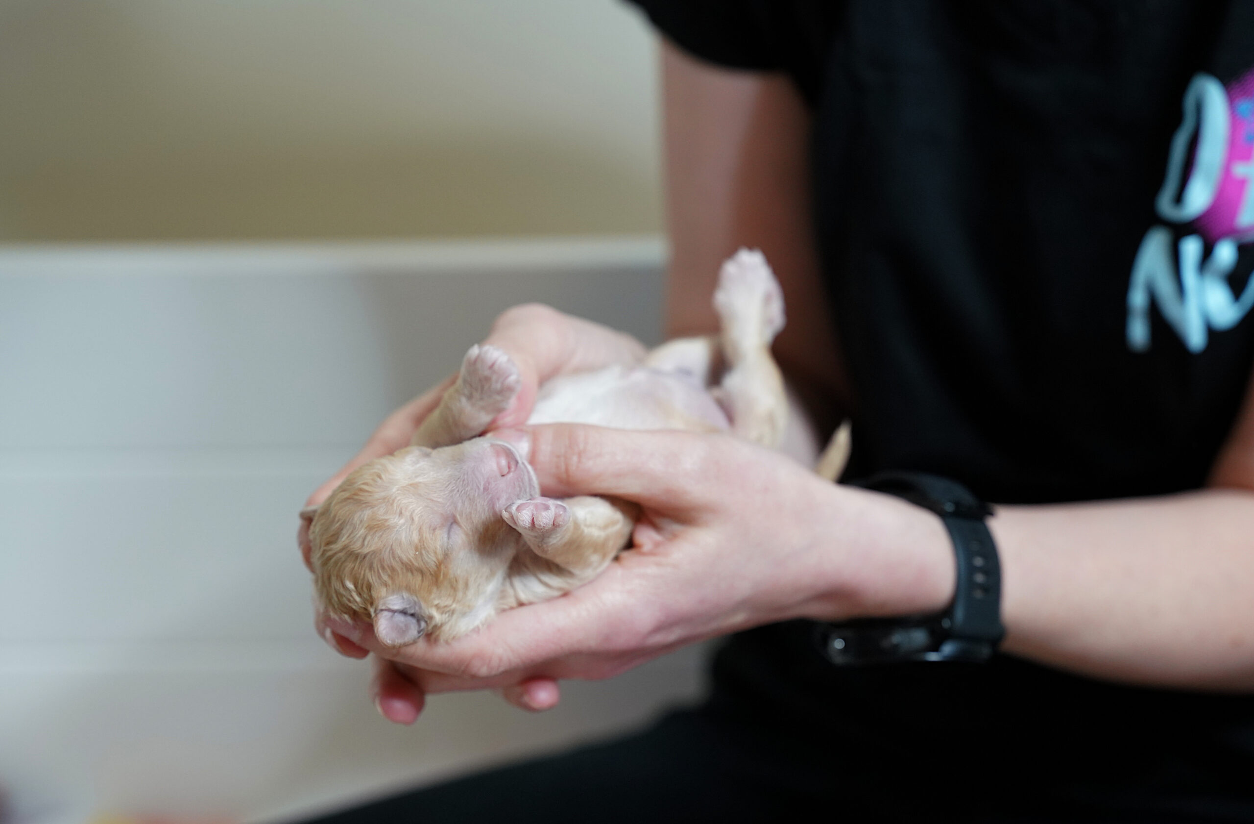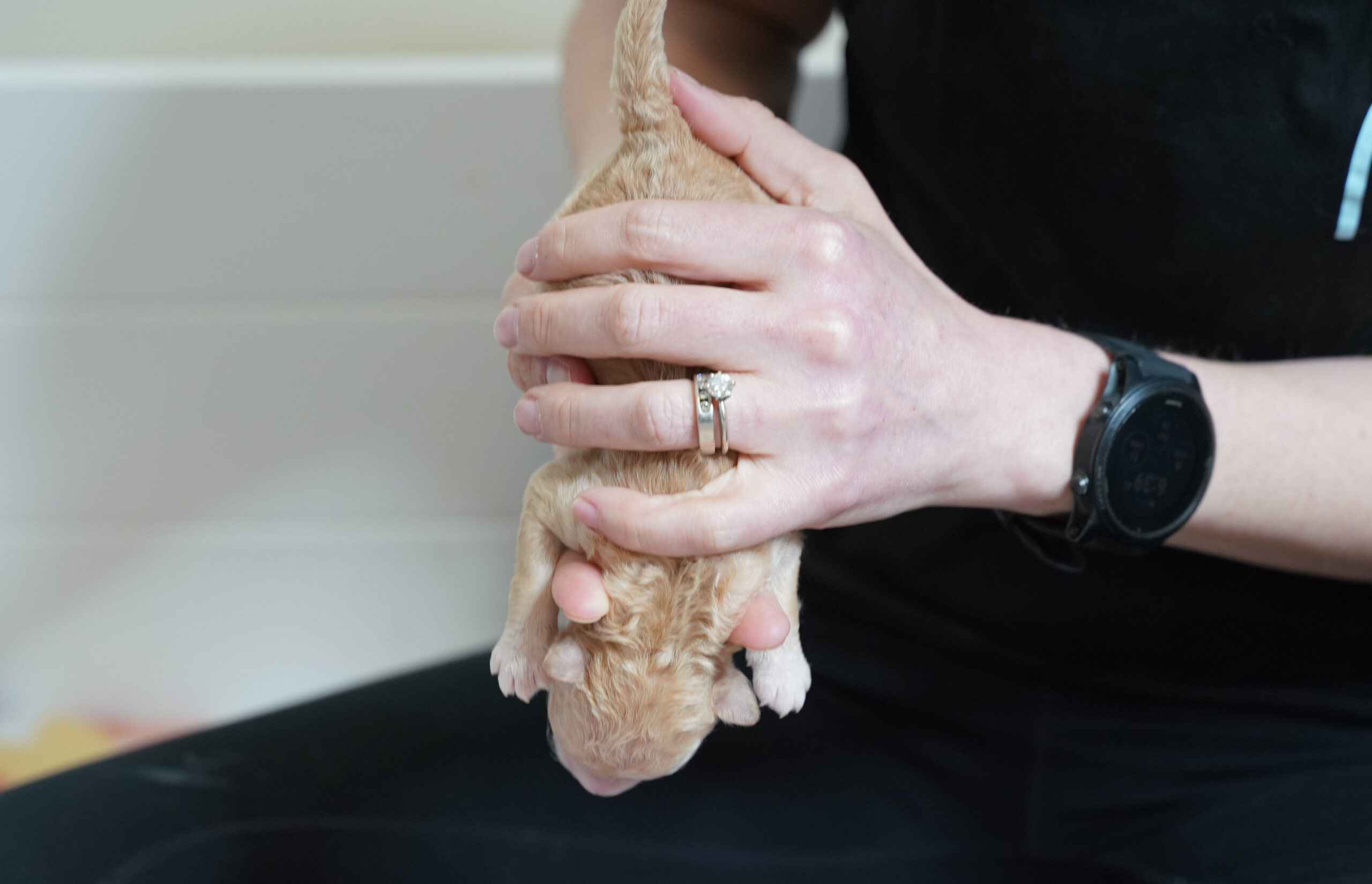 - On their back: Hold the puppy like a baby for several seconds